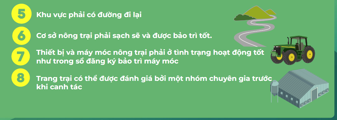 Cần tuân theo các tiêu chí sau trong việc lựa chọn địa điểm trang trại thích hợp: