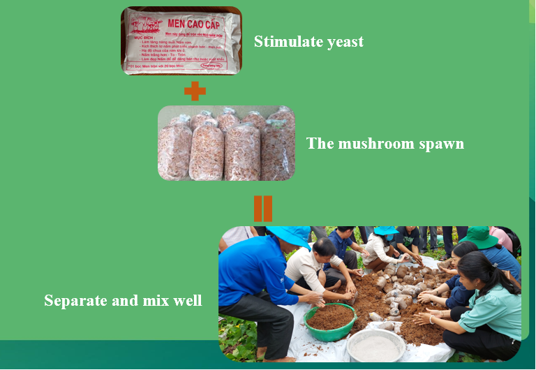 • The spawn is separated and mixed with mycelium-stimulating yeast at the recommended ratio.