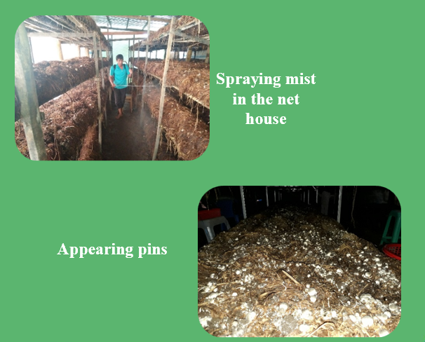 • Incubate the mycelium within 3 days, check the humidity and temperature in the net house regularly to control water spraying, and open the net house for ventilation