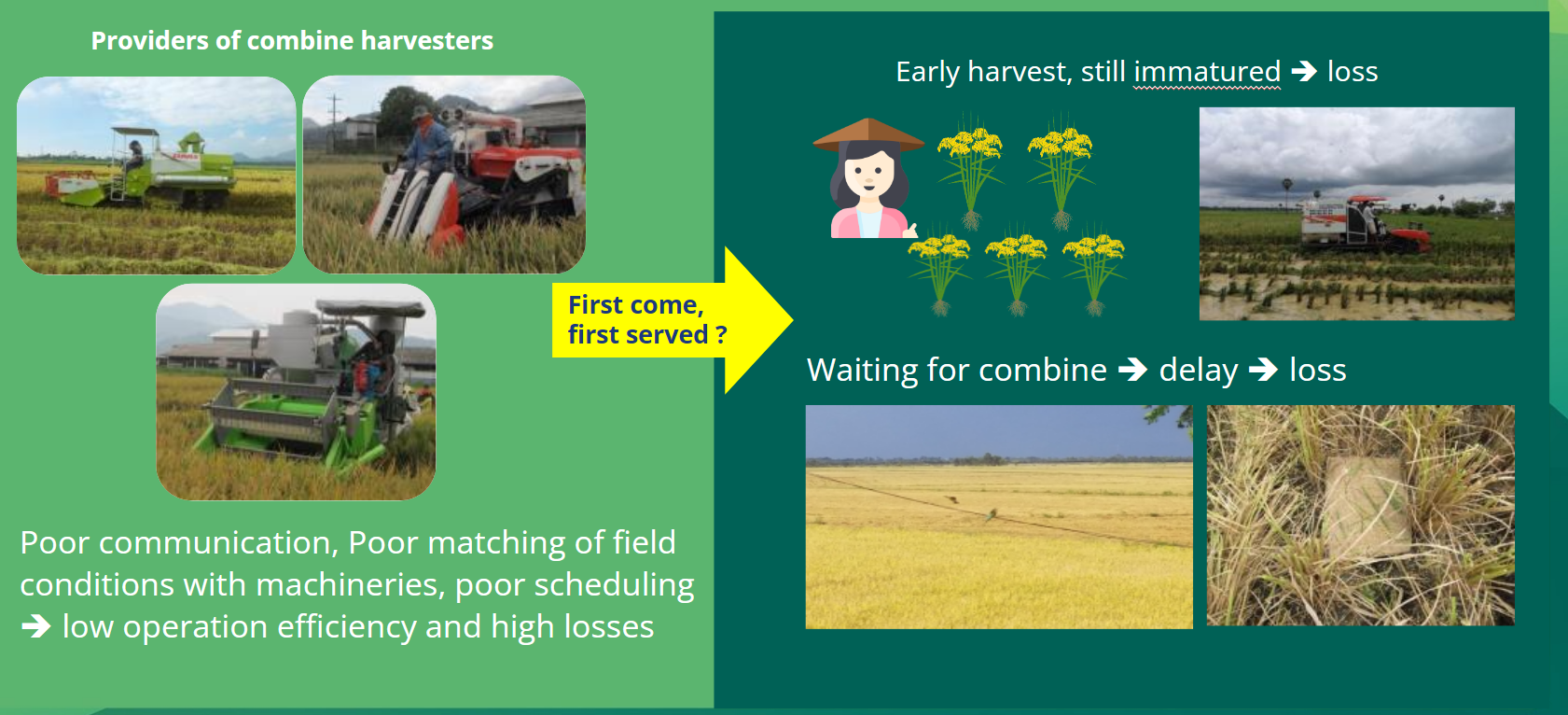 - Significantly reduce losses compared with manual harvesting (avoid losses caused by delay of harvesting, transportation of rice plants between cutting and threshing, etc.)