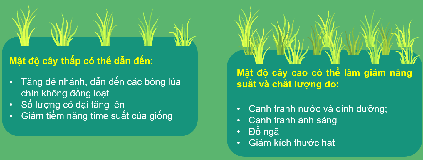 Điều này có nghĩa là ít nhất 70–100 dảnh/m2  khi cấy hoặc 80–120 kg hạt giống/ha khi gieo sạ. Khi sử dụng hạt giống có giá trị cao, gieo, cấy 1 dảnh/khóm.