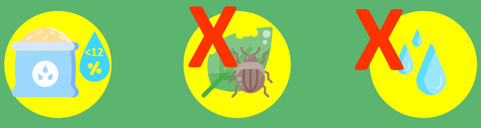 Storability of grain or seed is affected by climate (temperature and RH) and MC.