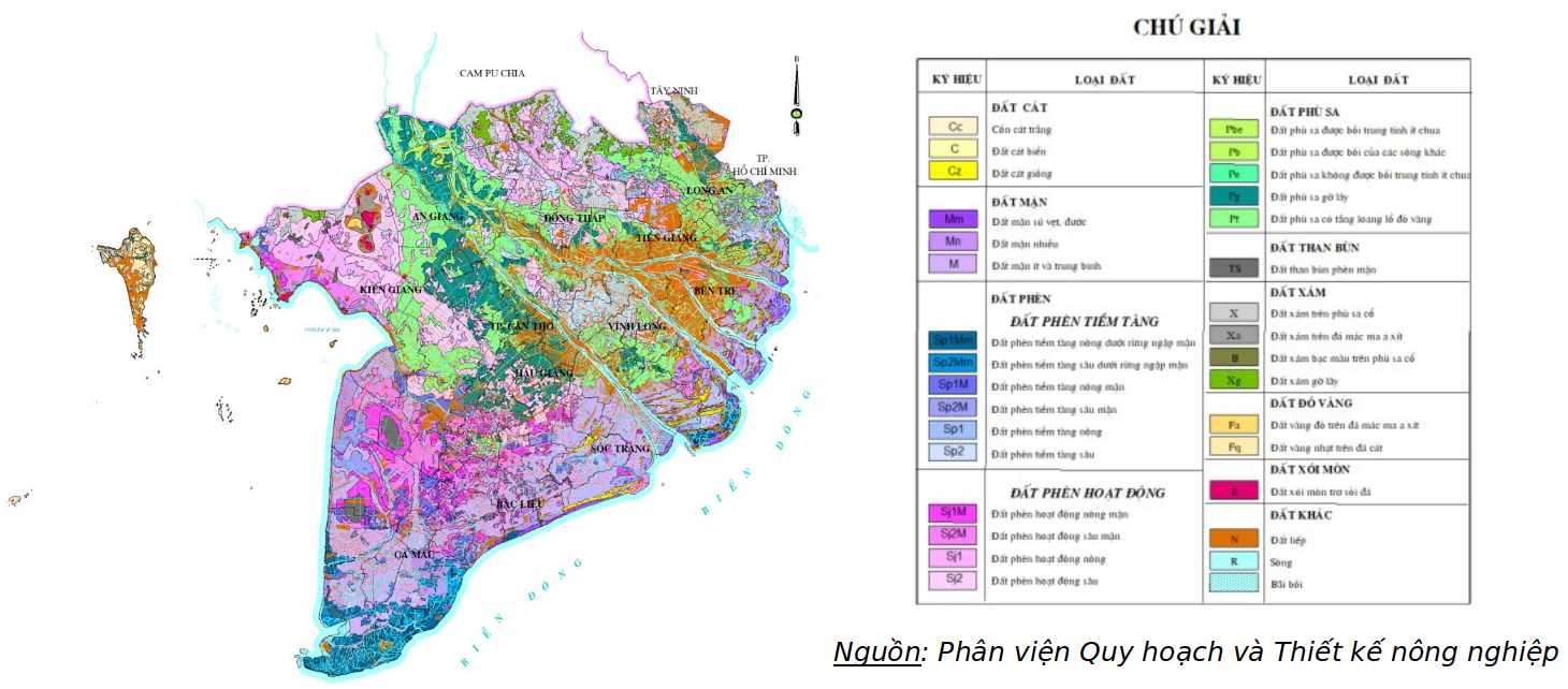 Bản đồ các loại đất ở đồng bằng sông Cửu Long