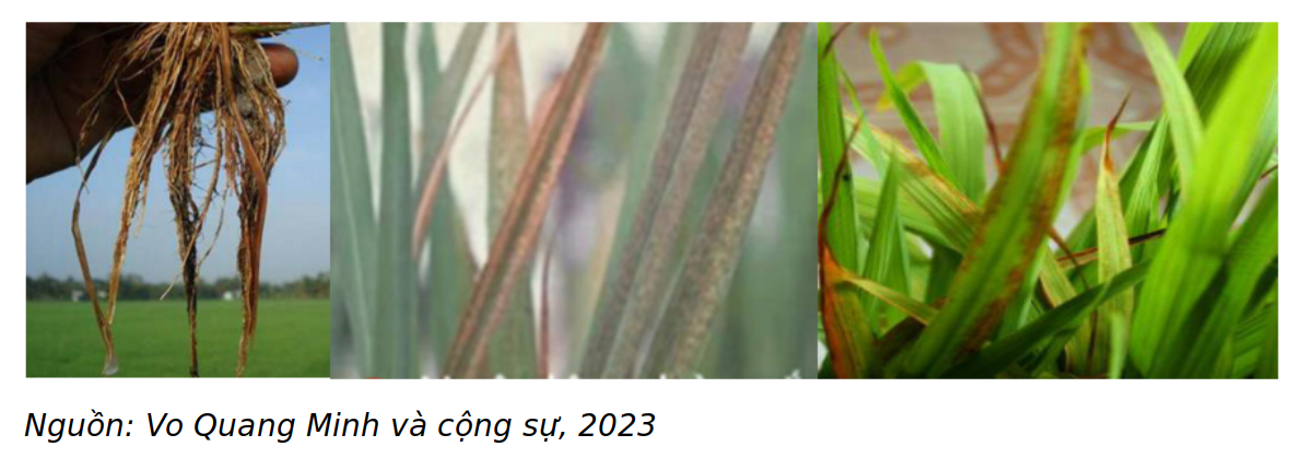 Triệu chứng ngộ độc sắt ở rễ và lá lúa