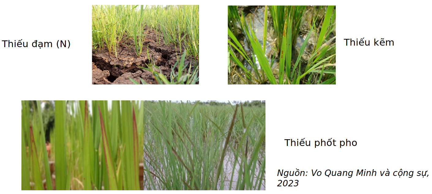 - Thiếu đạm: quá trình khoáng hóa chất hữu cơ do hoạt động của vi sinh vật diễn ra chậm trong đất phèn hoạt động (ướt, lạnh)