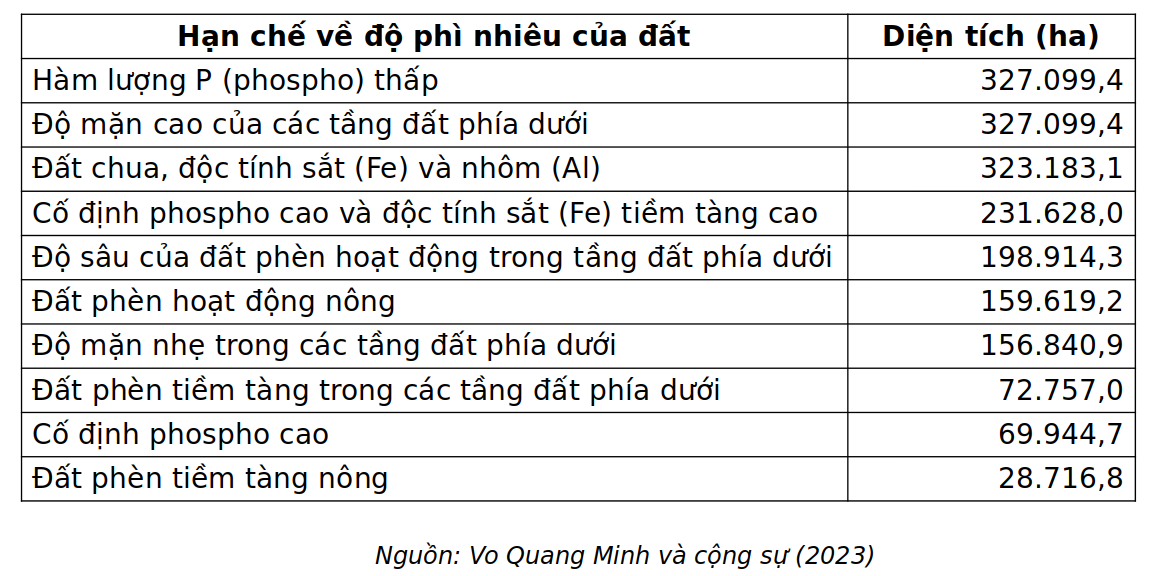 Xếp hạng các hạn chế về độ phì của đất lúa ở ĐBSCL
