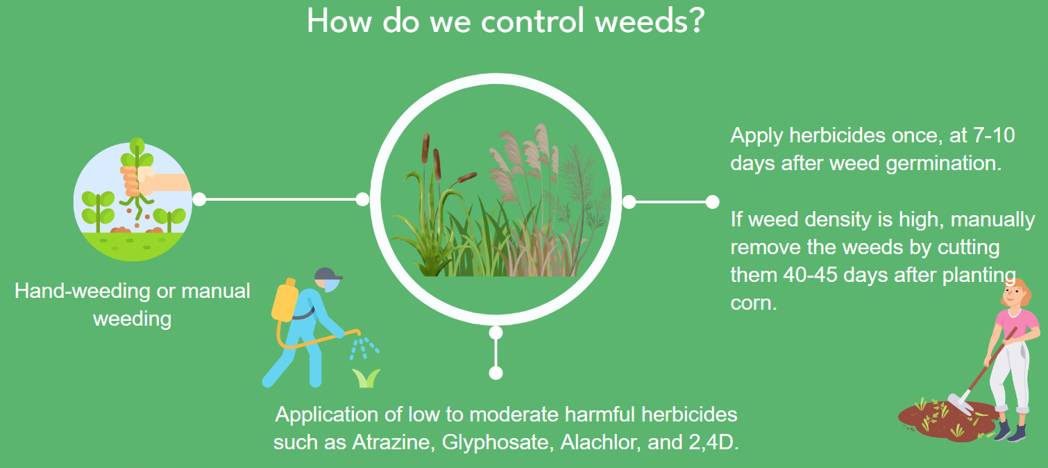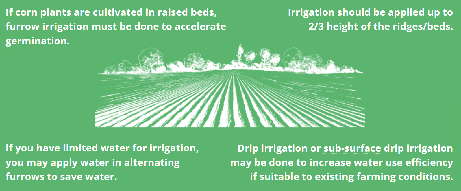 • Apply the fertilizers by making a ditch beside the maize plant.