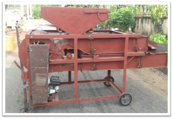 The figure above shows the schematic diagram of a seed cleaner combining a blower for dust and light impurity aspiration and the oscillating sieves for grading seeds as well as cleaning weed grains based on the specific weight differences. Seed cleaning and grading are very important to ensure better seeding operations (e.g., using drum seeders, seed sprayers, etc.), minimize seed rate and reduce weeds, and increase grain yield and quality.