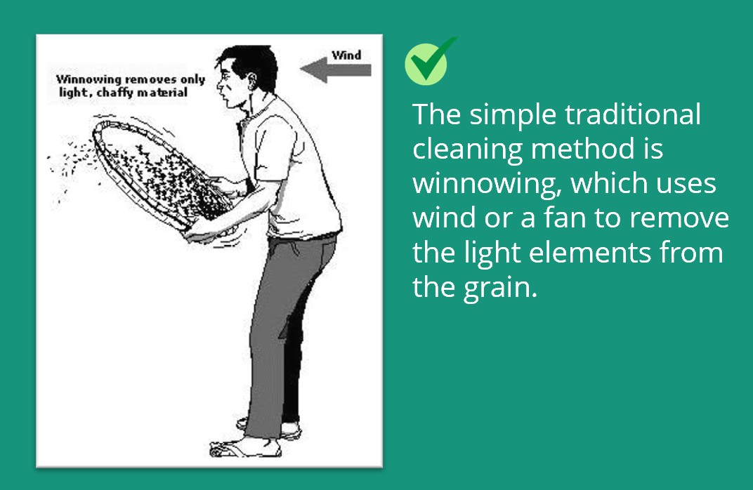 Threshed seed contains all kinds of trash. This trash can be vegetative, such as chaff, straw, empty grains and foreign seed, as well as mineral materials, such as earth and stones. Seed should be as soon as possible after harvesting and certainly before storage.