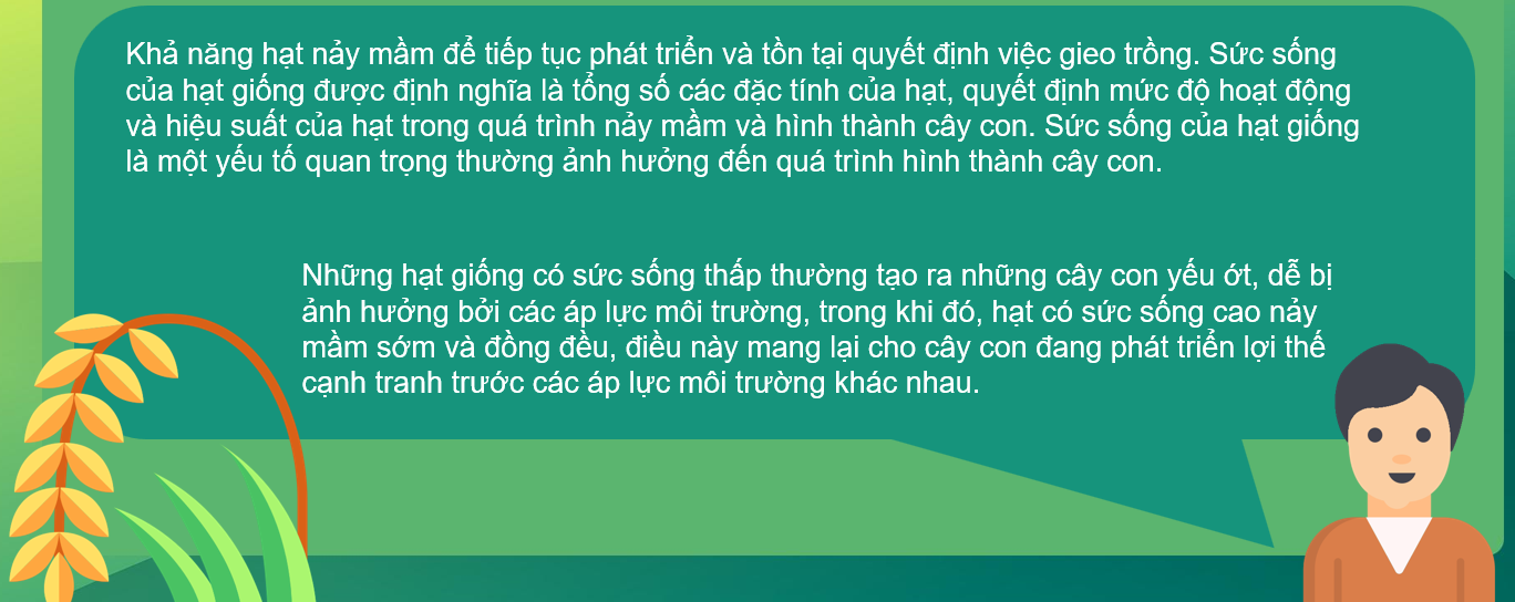 Khả năng sống của hạt giống: Khả năng sống của hạt giống trên đồng ruộng sẽ được xác định phần lớn từ độ ẩm khi lưu trữ, khả năng nảy mầm và sức sống của cây con.