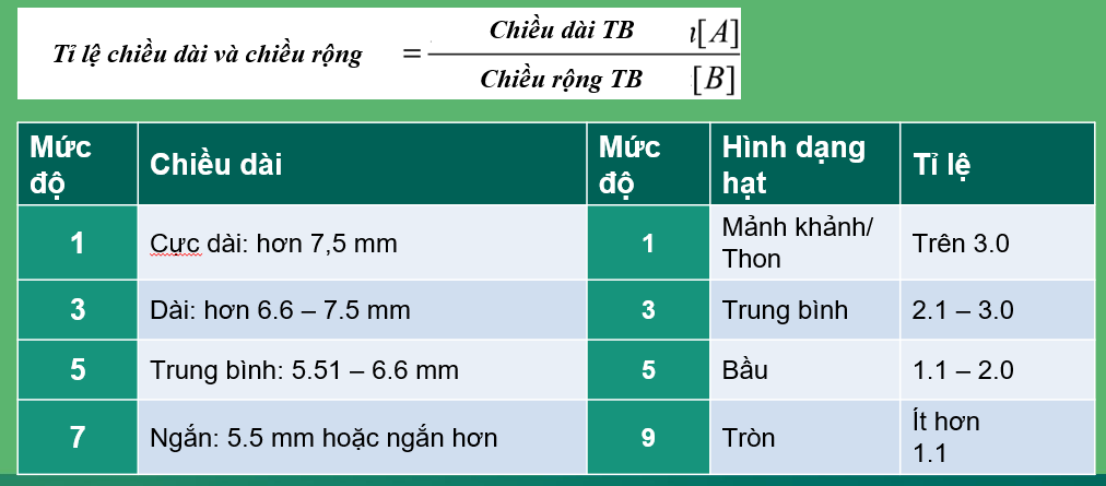 Hình dạng hạt: Để thu được hình dạng hạt, tỷ lệ chiều dài và chiều rộng, sử dụng phương trình sau: